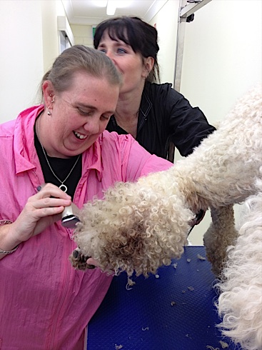 Our instructors Kylie and Michelle from Clipper World were great at showing us the techniques required to hold the dog so it was comfortable and so we would be able to clip it confidently. Also learnt about bathing poodles and other breeds, blow drying and combing, clipping nails, cleaning ears and tails, getting out tangles and scissor techniques. Such fun.
