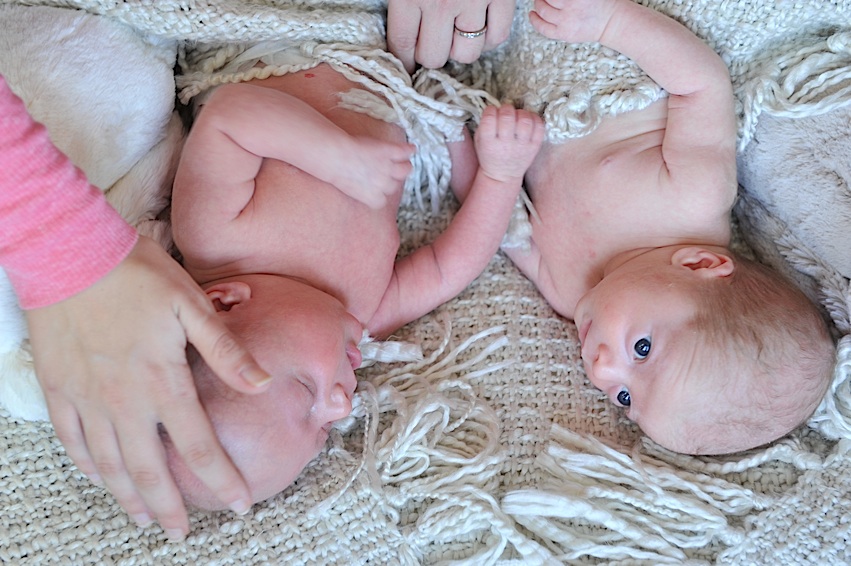 Twins!!!!!! What more can I say? Double cuteness. Double soft skin. Double tiny feet and hands. Double.......trouble perhaps? NO! They were adorable, and very funny. Miles the larger of the two was not particularly impressed with the idea of being disturbed mid sleep to be stripped off down to his nappy (in the nicely heated room), and placed in a basket filled with rugs and have his mum and another lady try to position him so he looked cherub like. No way was he going to put up with this nonsense, and let us know! Owen on the other hand, didn't really care too much, once left alone, he settled down to continue his nap.